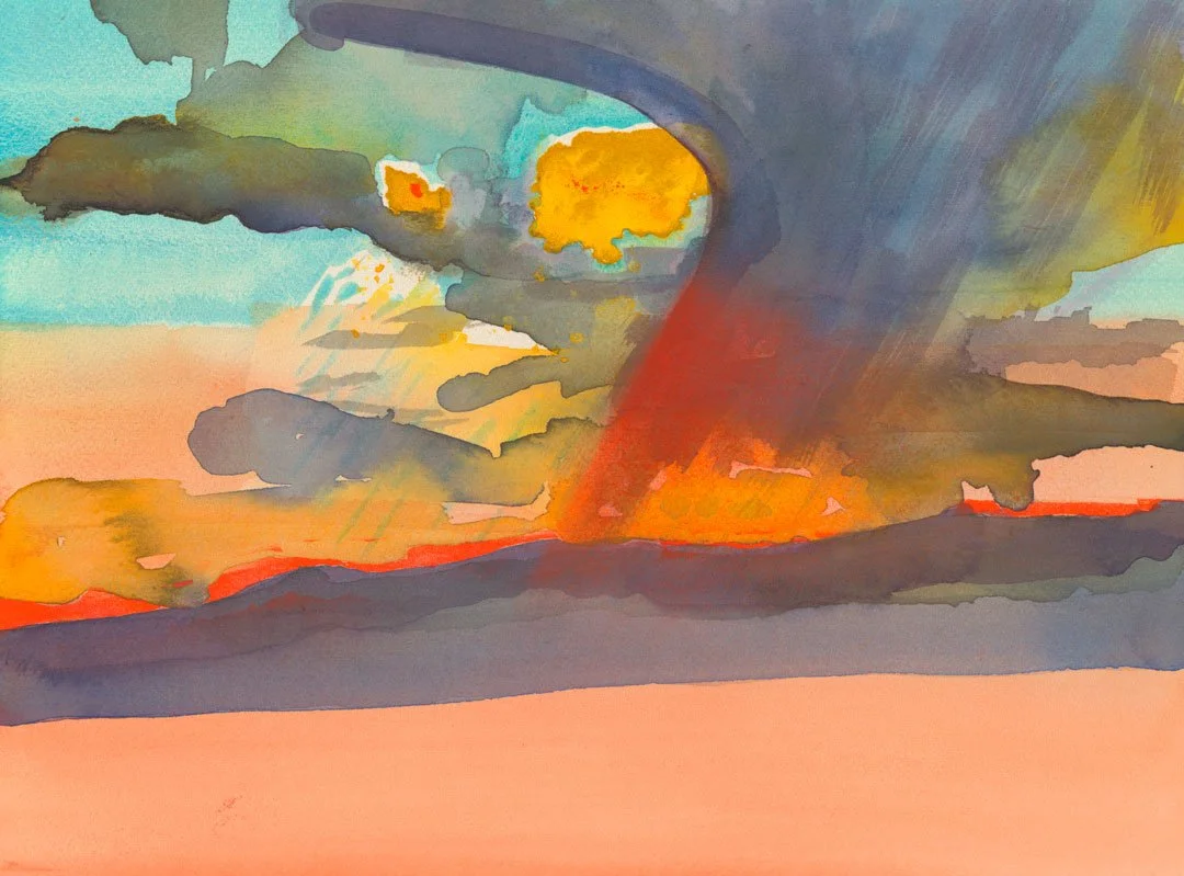 Montello Sunstorm, watercolor and spray paint on paper, 11x14. SOLD